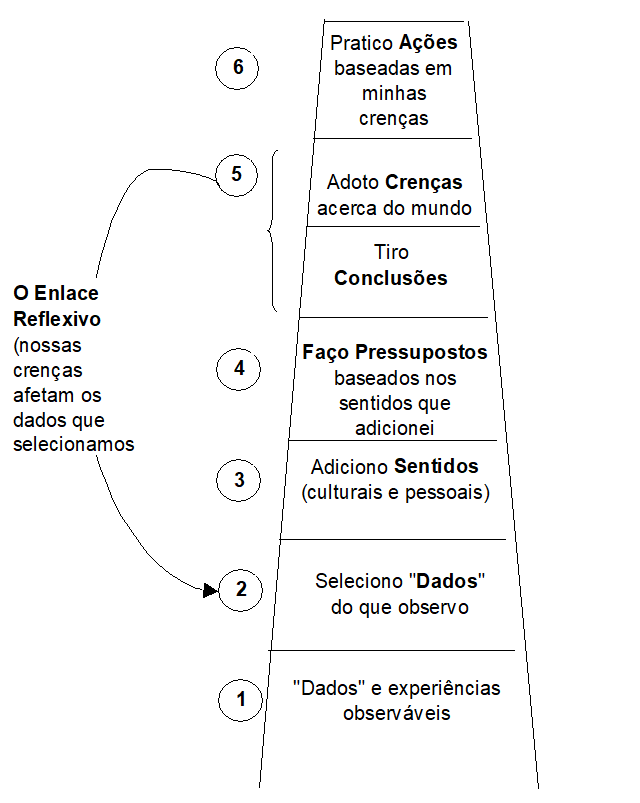 O Enlace Reflexivo proposto por Argyris apud Senge (2000) significa considerar o quanto os modelos individuais afetam os dados que selecionamos.
